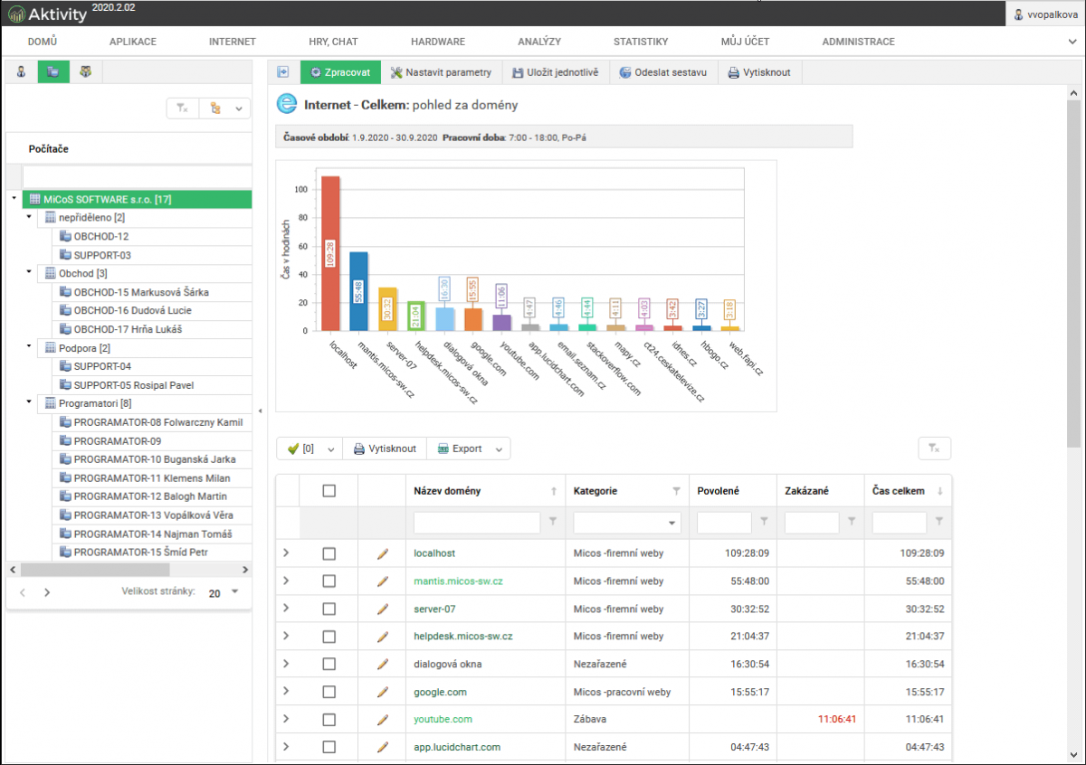 Aktivity vám mj. vytváří i výkonostní statistiky, příp. dle vašeho nastavení analyzují finanční ztráty plynoucí z nedostatečné produktivity.