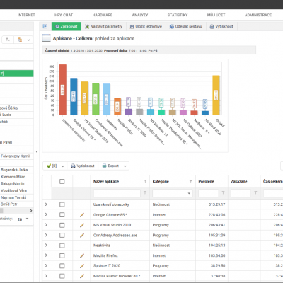 S touto funkcí získáte přehled o všech aplikacích, které váš zaměstnanec na daném počítači spouští. Získáte tak informace o tom: