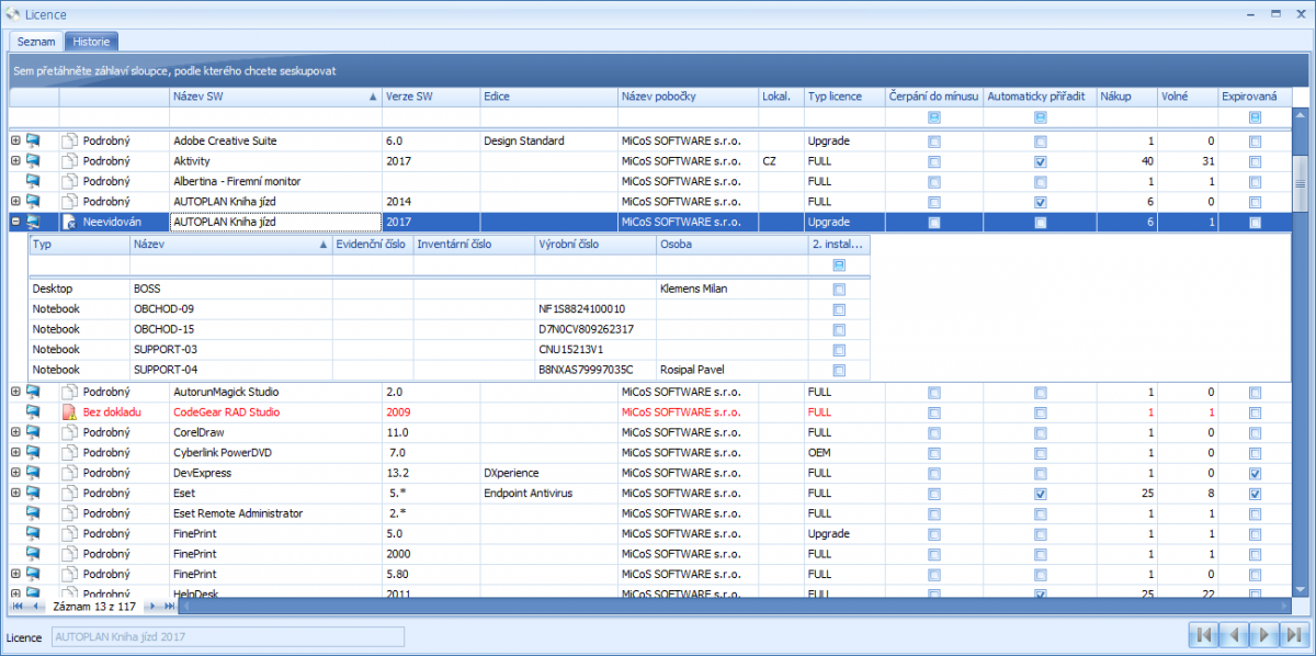 Správce IT automaticky detekuje všechny programy, které se ve vaší firmě používají, a umožňuje vám k nim přiřazovat různé druhy licencí. Kromě jejich evidence také kontroluje, zda je jejich používání legální.