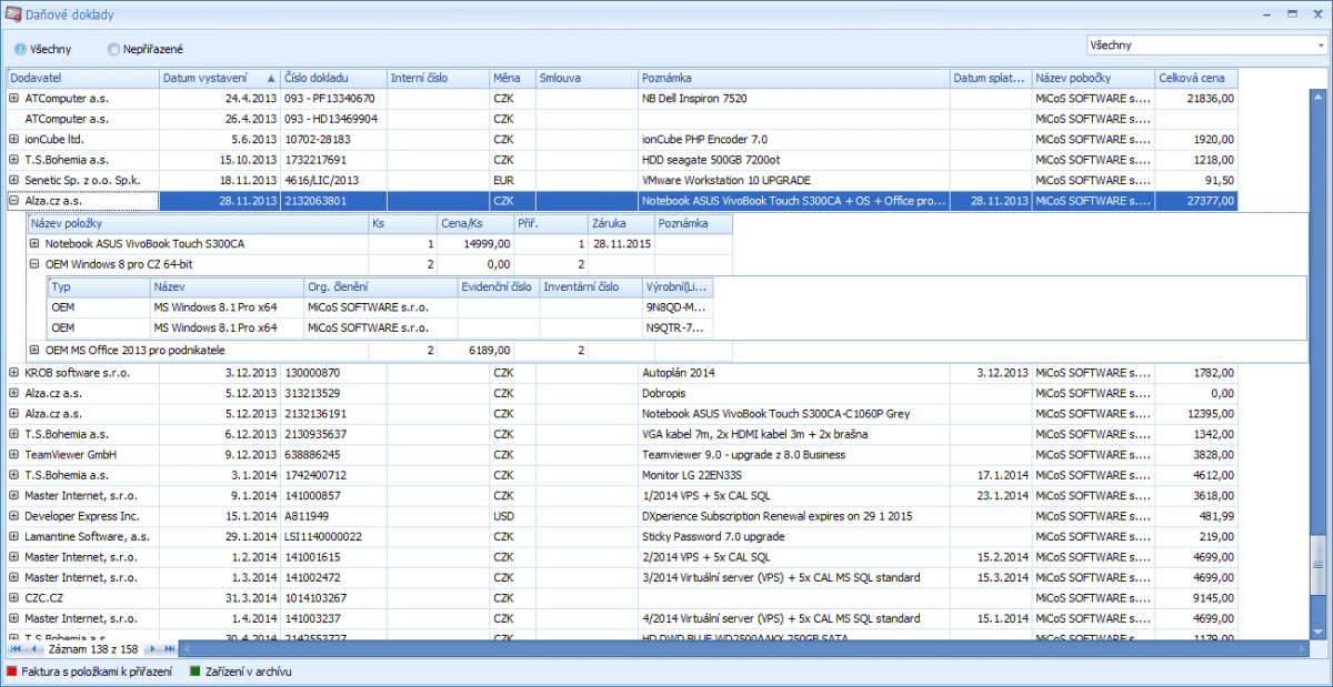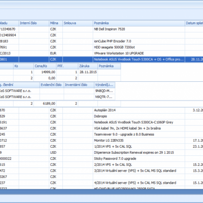 Do databáze Správce IT můžete ukládat potvrzení o zakoupeném majetku (vybavení, softwarové produkty…), které současně k danému majetku můžete i přiřazovat. O vašich firemních nákupech tím získáte přesný přehled.