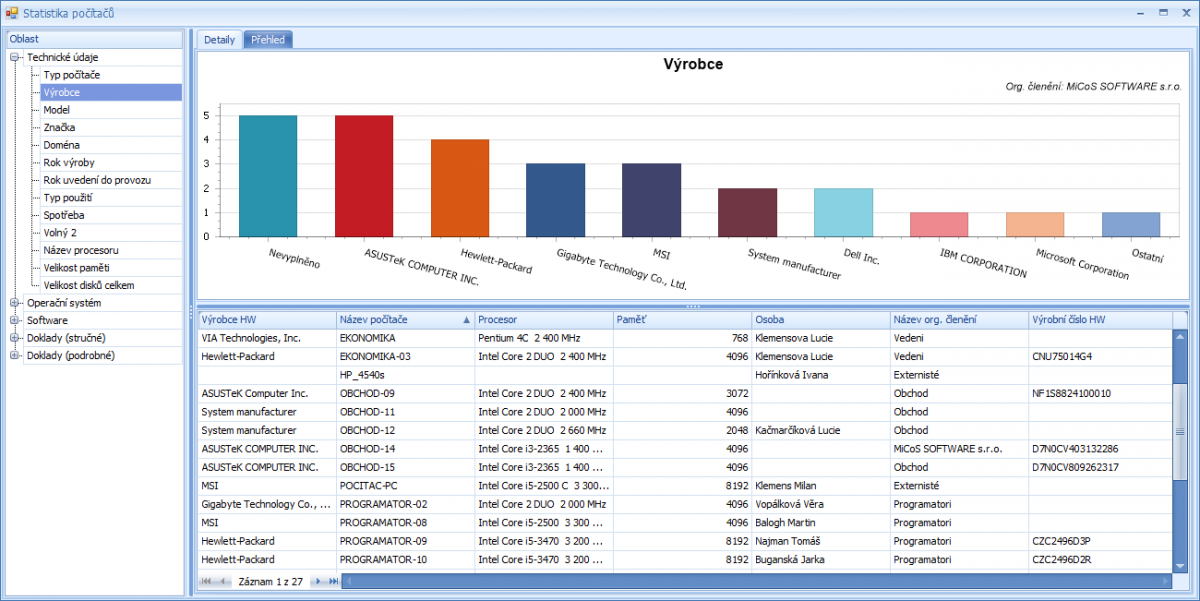 Jedná se o automatizovaný přehled technického vybavení, který je velmi podrobný. Poskytuje vám nejen větší kontrolu nad HW vybavením, ale i předběžné plánování jeho změn.
