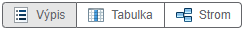 Na stránce s výběrem šablony pro zadání nového požadavku je možné si zobrazit šablony ve třech různých zobrazeních. Ve všech zobrazeních lze vyhledávat. Zobrazení se přepíná pomocí těchto voleb: