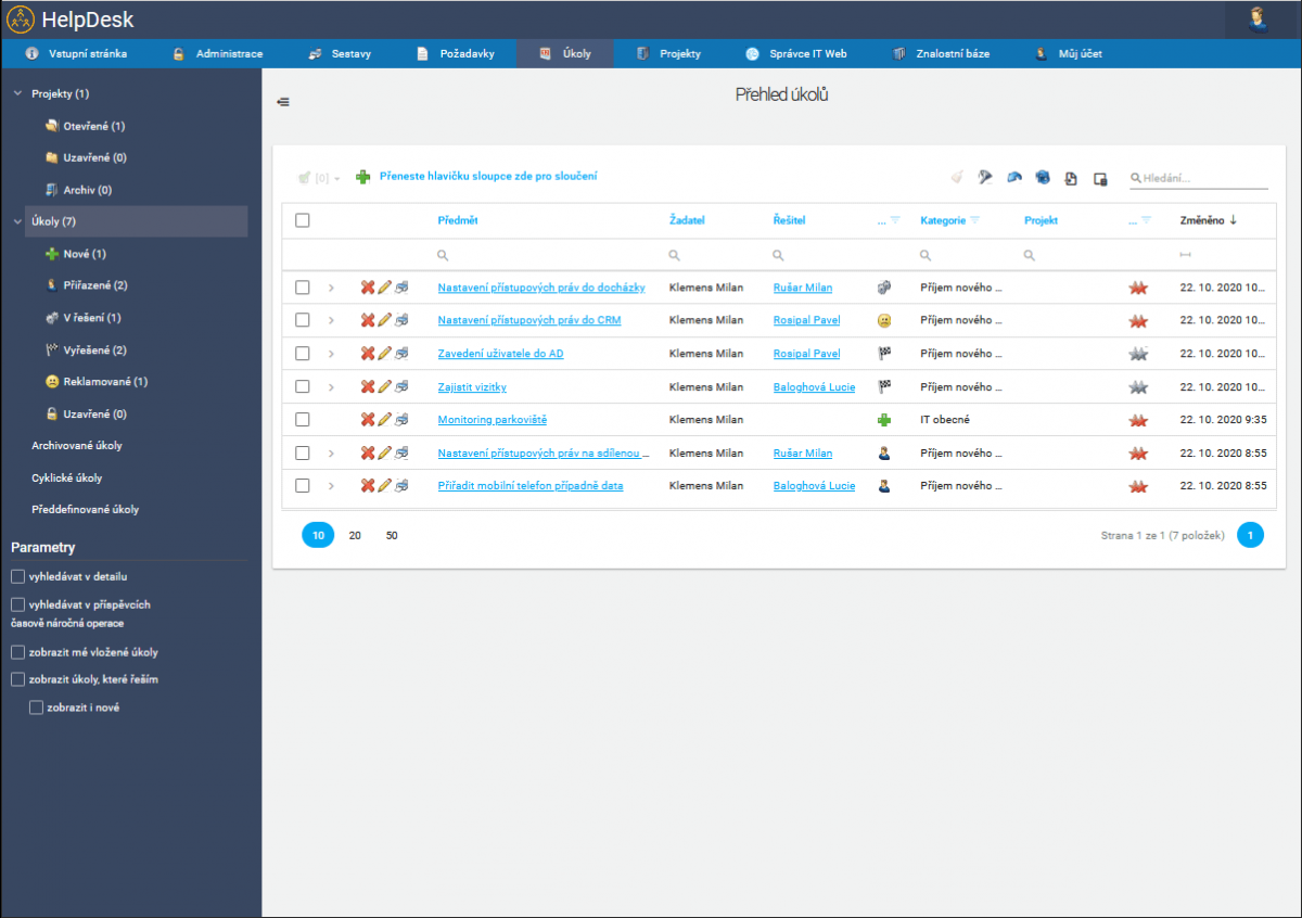 Aplikace přináší především organizaci a celkový přehled o řešených problémech. Dále pak poskytuje informace o přesných postupech řešení, komunikaci a jejich efektivitě. Nyní budete přesně vědět, jak se vaši zaměstnanci stavějí k různým situacím a zdali jsou schopni pracovat jako tým. Navíc vám HelpDesk ušetří spoustu času!