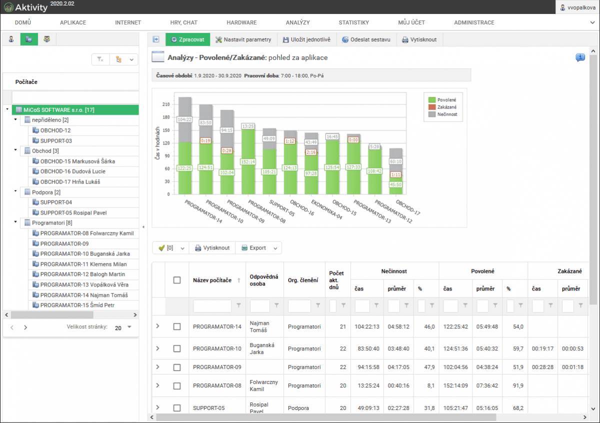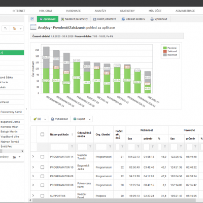 Funkce monitoringu používaných aplikací během pracovní doby vám dle jejich využití umožňuje mj. vybírat vhodné aplikace a licence pro další firemní nákupy. Snadno tak eliminujete nákupy těch, které vaši zaměstnanci při své práci téměř (nebo vůbec) nepoužívají.