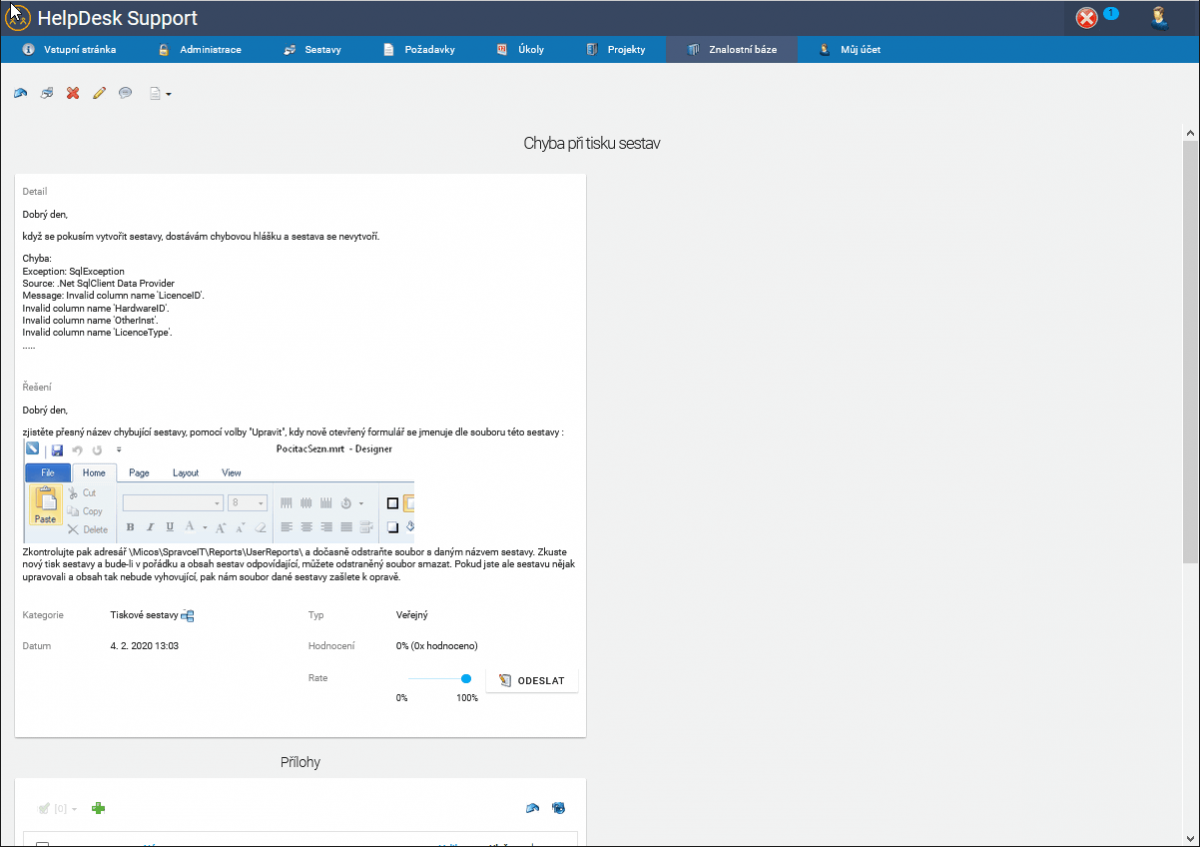 Velmi dobře mu totiž místo vaší odpovědi (a vašeho času) postačí náhled do firemní znalostní báze, kde nalezne všechny postupy, návody i způsoby řešení problémů. Do této znalostní bázi lze přitom nahrávat nejen texty, ale i obrázky i videa.