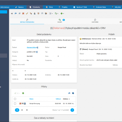 Nemusíte ani zvedat telefon, hledat v e-mailové schránce, nebo se pročítat poznámkami na papíře. Všechno – od zadání, přes průběžnou komunikaci, případné schvalování (např. firemních nákupů), až po vyřešení požadavku – je v HelpDesku automaticky evidováno a kdykoli k zobrazení.